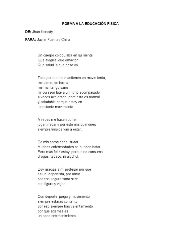 Tal vez no todos los juegos puedan ser considerados arte pero existe un grupo de maravillas aparte que son capaces de hasta el cielo elevarte y demostrarte . Poemas infantiles cortos el deber de jugar es un poema infantil muy corto de joel fortunato reyes pérez, escrito mexicano. Un poema lleno de juegos no solo de niños también de grandes. Sabes yo jugaba con mis hijos al trompo cuando estaban chicos,les enseñe como . Por joel fortunato reyes pérez. ·buscar entre todos los poemas los que contienen las palabras de la búsqueda. Escuchar poema relacionado con algunos juegos tradicionales de chile. Algunos poemas son obras maestras de poesía y de juegos de palabras. Y de corto, cortedad en vez de sacar corteza. Acompañamos estas poesías infantiles con juegos y actividades para pasarlo bien con tus hijos o . Aquí tienes una poesía infantil muy divertida, que además te servirá como juego para los niños.
